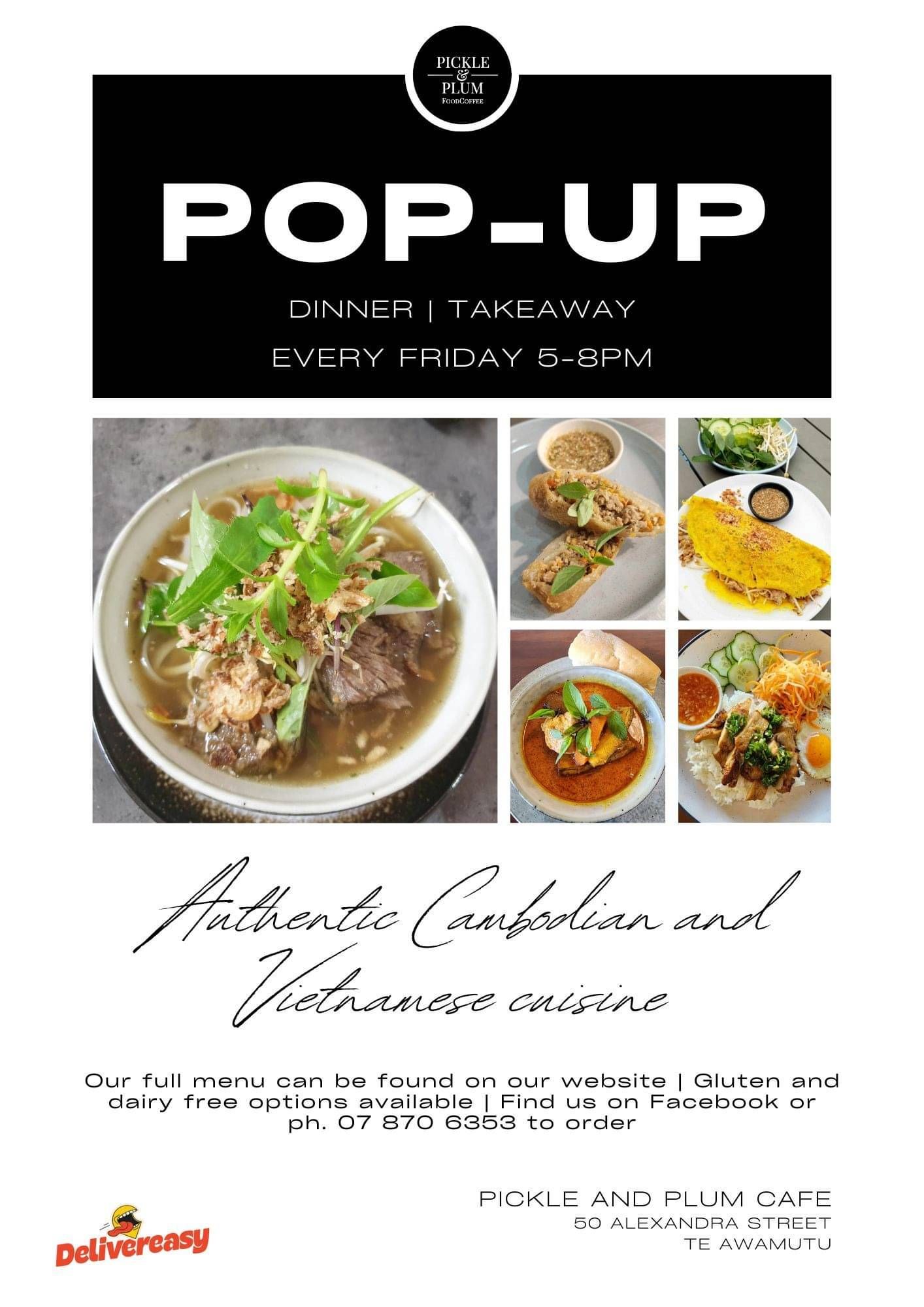 Delicious food and great coffee, Pickle and Plum offers food options for everyone in Te Awamutu! Our all day breakfast and lunch menu specialises in café favourites as well as traditional Southeast Asian Cuisine. Weekly pop-up dinner dates posted monthly.